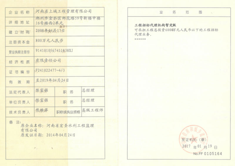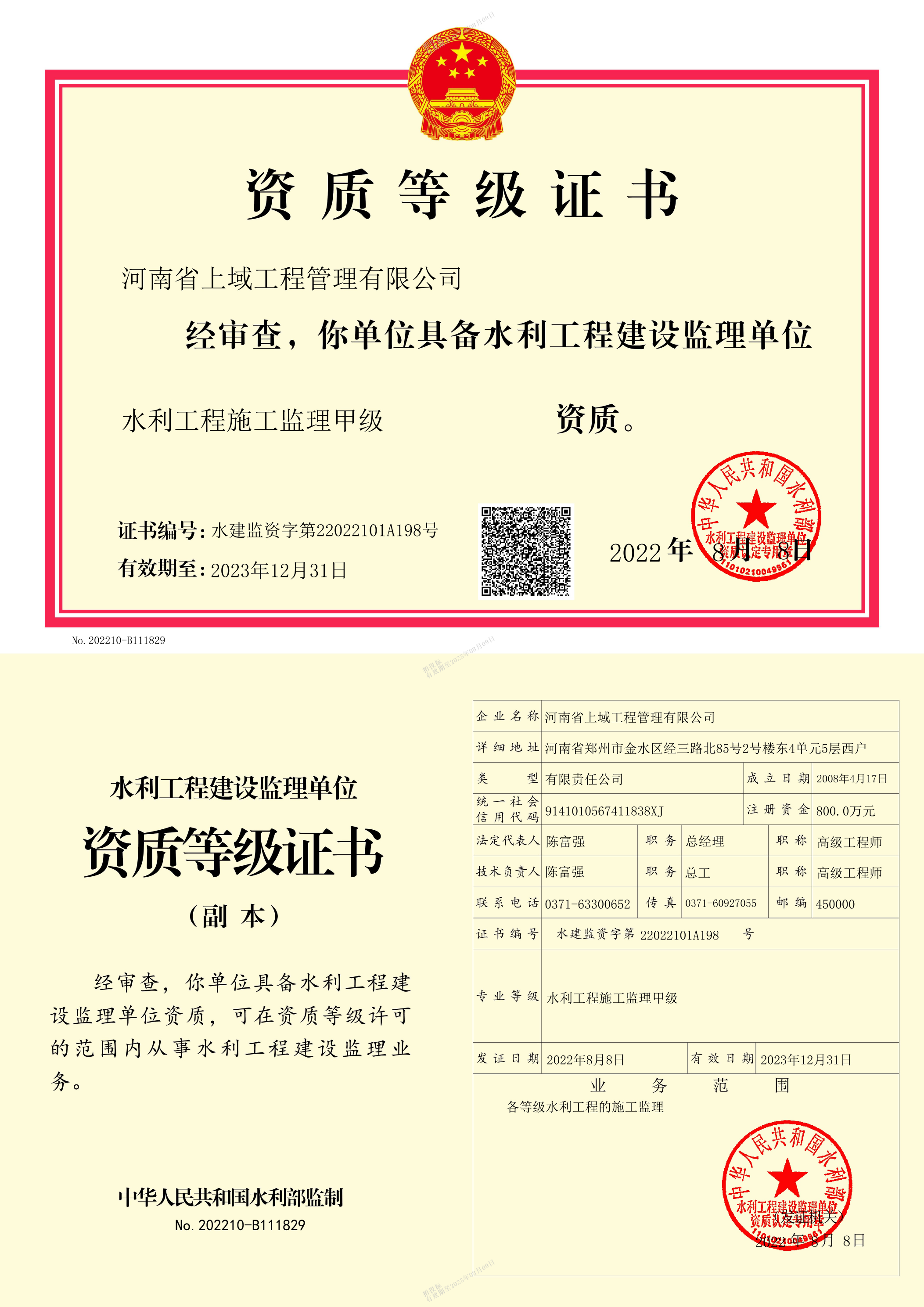 河南省上域工程管理有限公司(原河南省宏圣水利工程監(jiān)理有限公司),自2008年4月由鄭州市工商局批準(zhǔn)成立,注冊(cè)資金800萬(wàn)元,具有獨(dú)立法人資格,專(zhuān)業(yè)從事招標(biāo)代理和水利工程監(jiān)理服務(wù)的企業(yè)。公司具有國(guó)家水利部頒發(fā)的水利工程施工監(jiān)理甲級(jí)資質(zhì),環(huán)境保護(hù)資質(zhì),水土保持乙級(jí)資質(zhì)...